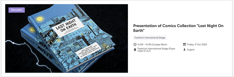 within the EU Creative Europe anthology Last Night on Earth — the English edition of One Meme Away From War marked its first international showing, a quadrilingual voice joining the broader conversation on memory, image, and tenderness after catastrophe.
